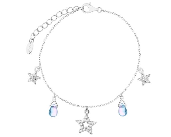 Bransoletka srebrna z cyrkoniami i szlifowanym szkłem – gwiazdy – AP541-3788. Srebro rodowane