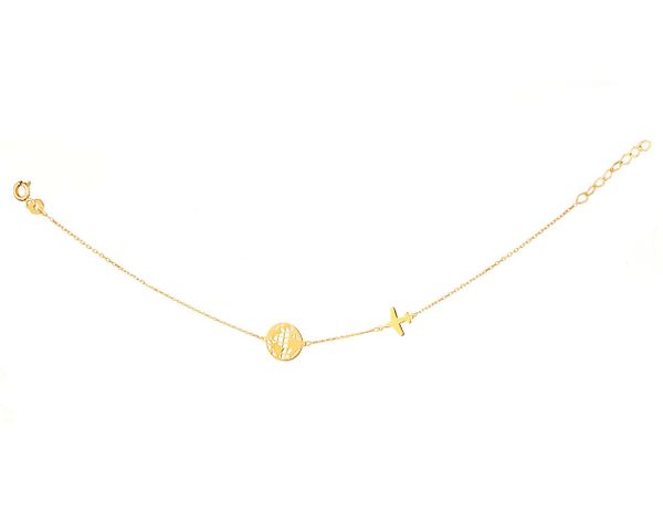 Złota bransoletka – kula ziemska, samolot – AP526-7897. Żółte złoto