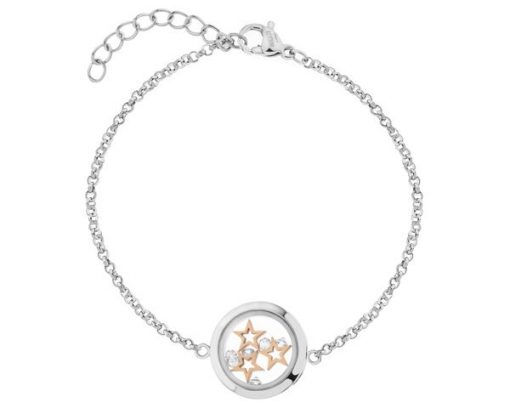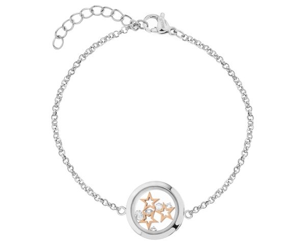 Bransoletka ze stali szlachetnej z cyrkoniami i szklanymi detalami – gwiazdy