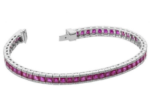 Bransoletka z białego złota z brylantami i rubinami – 18 cm – próba 585 – 103.407. Białe złoto rodowane