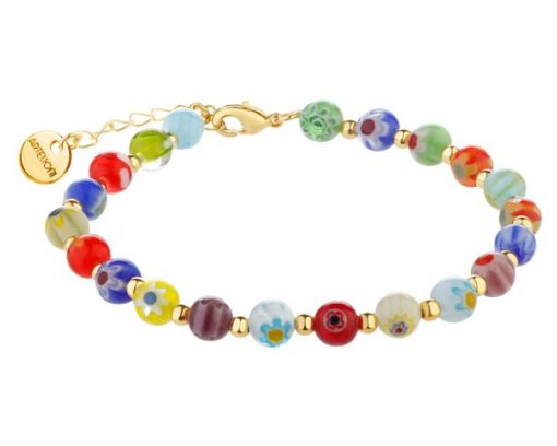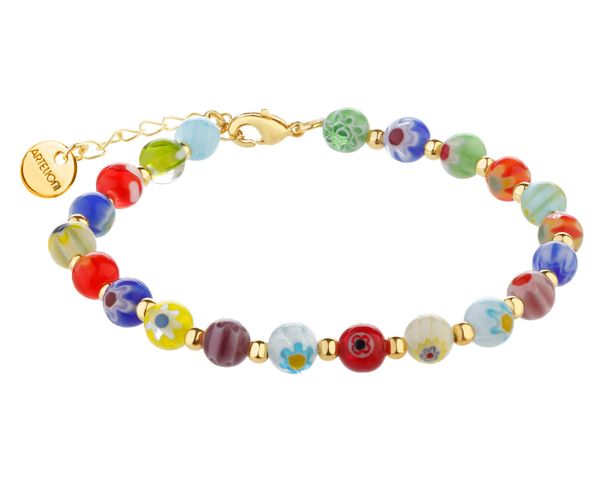 Bransoletka z mosiądzu pozłacana ze szklanymi detalami – kwiatki – AR537-4610. Mosiądz pozłacany