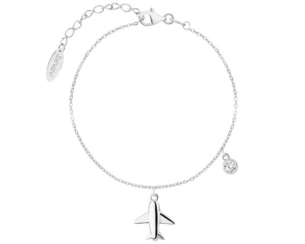 Bransoletka srebrna z cyrkonią – samolot – AP540-9821. Srebro rodowane