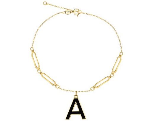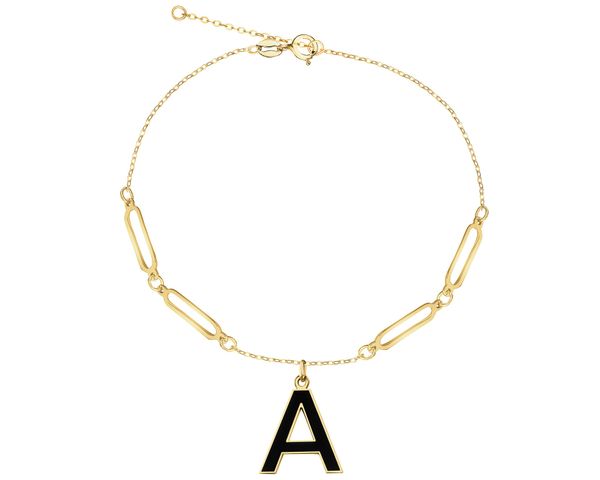 Złota bransoletka z emalią, ankier – litera A – AP538-0328. Żółte złoto