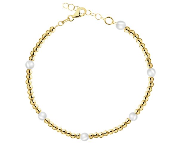 Złota bransoletka z perłami – kulki – AP543-3525. Żółte złoto