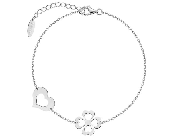 Bransoletka srebrna z cyrkoniami – koniczyna, serce – AP543-2843. Srebro rodowane
