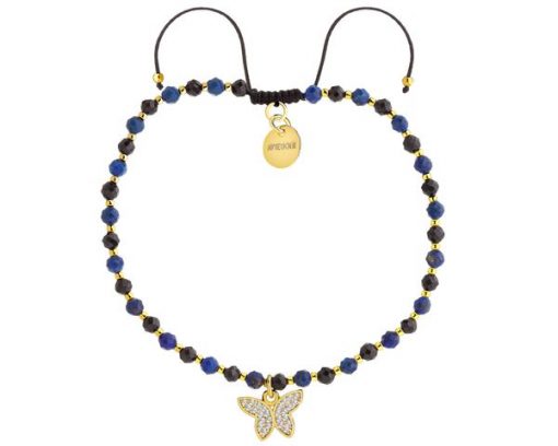 Bransoletka z mosiądzu pozłacana z cyrkoniami, lapisami i spinelami – motyl