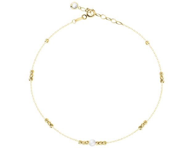 Złota bransoletka z perłą i cyrkonią – kulki – AP543-5521. Żółte złoto