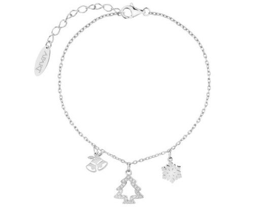 Bransoletka srebrna z cyrkoniami – choinka, śnieżynka, dzwonki – AP536-6490. Srebro rodowane