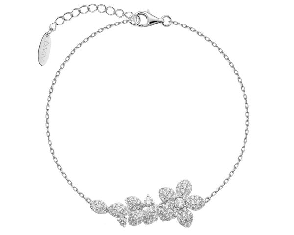 Bransoletka srebrna z cyrkoniami – kwiat – AP542-1720. Srebro rodowane