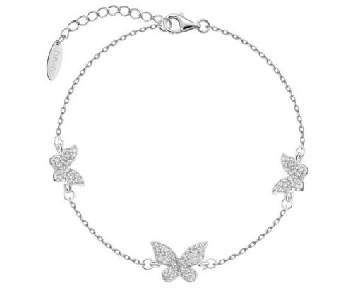 Bransoletka srebrna z cyrkoniami – motyle – AP541-2601. Srebro rodowane