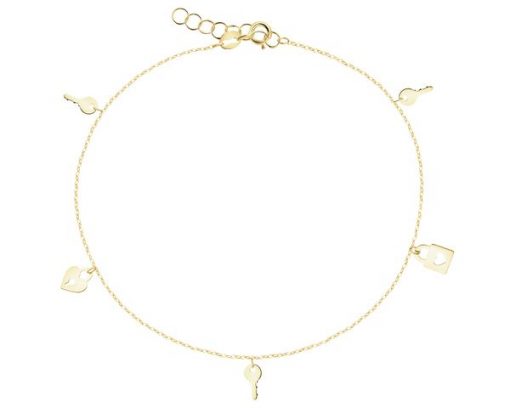 Złota bransoletka – kluczyki, kłódki – AP543-6066. Żółte złoto