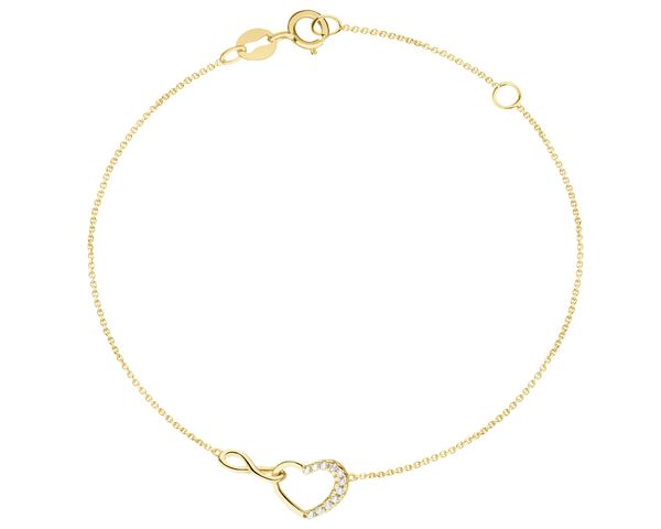 Złota bransoletka z cyrkoniami – nieskończoność, serce – B-101.01. Żółte złoto