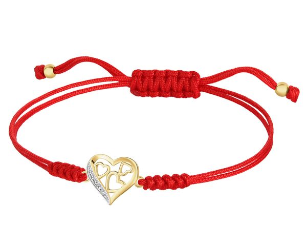 Bransoletka z elementami żółtego złota i diamentem – serca – 0,002 ct – próba 375