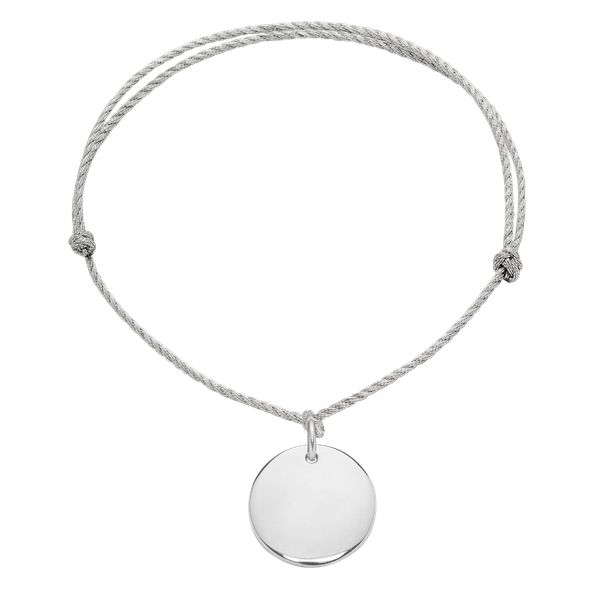 Bransoletka z medalikiem o wielkości 1,5 cm na grubym srebrnym sznurku premium. Osobisty grawerunek doda wyjątkowości i pomoże wyrazić uczucia. Medalik jest symbolem harmonii i talizmanem pozytywnych emocji. Zawieszka wykonana ze stali szlachetnej pokryta srebrem 925.