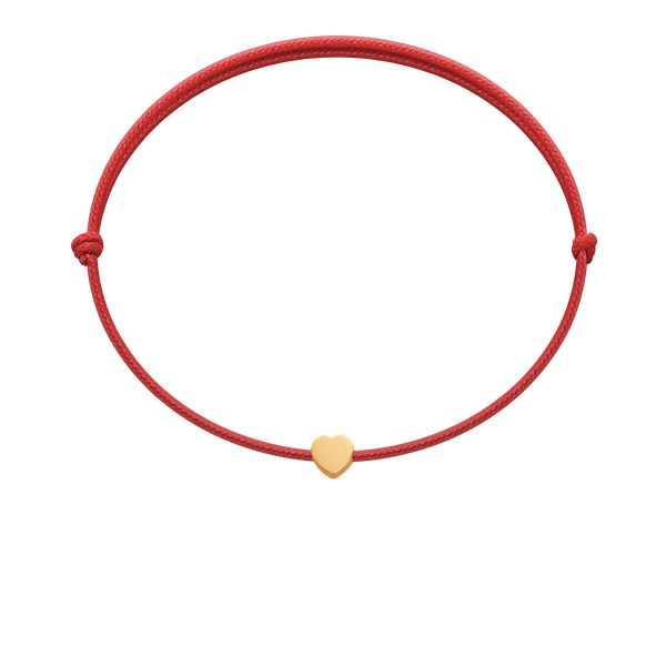 Bransoletka z pozłacanym sercem Etincelle o wielkości 0,6 cm na cienkim bawełnianym czerwonym sznurku.Serce jest symbolem miłości, namiętności i troski.Zawieszka Etincelle wykonana ze stali pozłacanej 18-karatowym złotem.