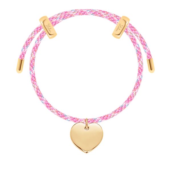 Bransoletka Liana wielokolorwa w odcieniach różu, pozłacana z zawieszką w kształcie serca. Bransoletka posiada możliwość regulacji. Serce jest symbolem miłości i namiętności. Osobisty grawerunek uczyni Twoją biżuterię niepowtarzalną. Całkowita długość bransoletki: 25 cm Wielkość zawieszki: 1,5 cm Zapięcie do regulowania ze stali szlachetnej pokrytej 18-karatowym złotem. Bransoletka wykonana z terylenu. Zawieszka wykonana ze stali szlachetnej […]