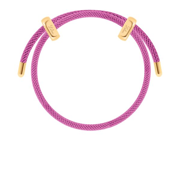 Bransoletka Liana, pozłacana w kolorze fuksjowym z możliwością regulacji. Długość bransoletki: 25 cm Zapięcie do regulowania ze stali szlachetnej pozłacanej 18-karatowym złotem. Bransoletka wykonana z terylenu. Bransoletkę możesz spersonalizować dodając do niej swój ulubiony talizman Lilou.
