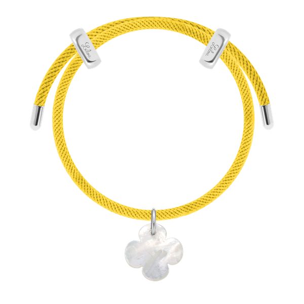 Bransoletka Liana, posrebrzana w kolorze żółtym z okrągłą koniczyną z masy perłowej