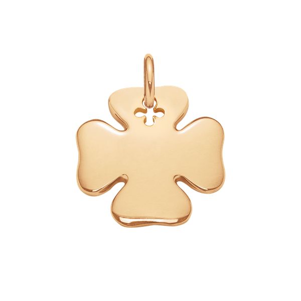 Koniczyna o wielkości 2 cm pozłacana. Koniczyna jest symbolem szczęścia i pomyślności. Osobisty grawerunek uczyni Twoją biżuterię niepowtarzalną. Zawieszka pozłacana 18-karatowym złotem. Z tyłu elementu znajduje się logo Lilou.