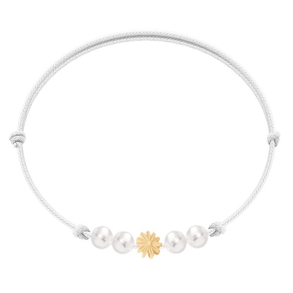 Bransoletka z pozłacaną Flowers Etincelle i białymi perłami na cienkim białym sznurku