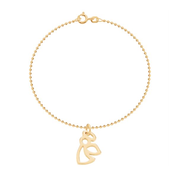 Bransoletka z pozłacanym ażurowym aniołkiem o wielkości 1,7 cm na łańcuszku Kulki. Aniołek jest symbolem piękna, szlachetności i niewinności. Zawieszka pozłacana 18-karatowym złotem.
