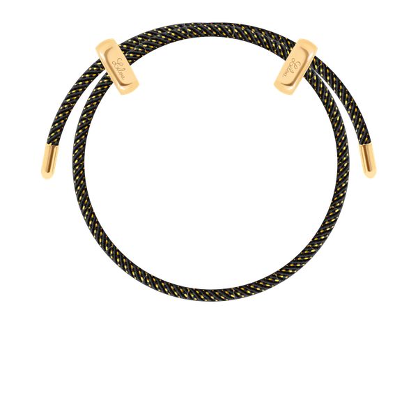 Bransoletka Liana, pozłacana w kolorze czarnym ze złotą nitką. Bransoletka posiada możliwość regulacji. Całkowita długość bransoletki: 25 cm Zapięcie do regulowania ze stali szlachetnej pozłacanej 18-karatowym złotem. Bransoletka wykonana z terylenu. Bransoletkę możesz spersonalizować dodając do niej swój ulubiony talizman Lilou.