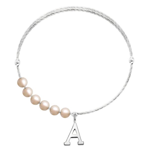 Bransoletka Astrid z posrebrzaną literką A o wielkości 1 cm i 6 białymi perłami mini na srebrnym grubym sznurku premium. Użyte perły są naturalne, słodkowodne, charakteryzują się nieregularnym kształtem i niepowtarzalnością