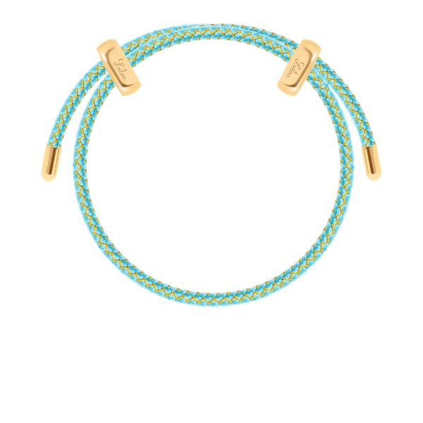Bransoletka Liana, pozłacana w kolorze jasnoniebieskim ze złotą nitką. Bransoletka posiada możliwość regulacji. Całkowita długość bransoletki: 25 cm Zapięcie do regulowania ze stali szlachetnej pozłacanej 18-karatowym złotem. Bransoletka wykonana z terylenu. Bransoletkę możesz spersonalizować dodając do niej swój ulubiony talizman Lilou.