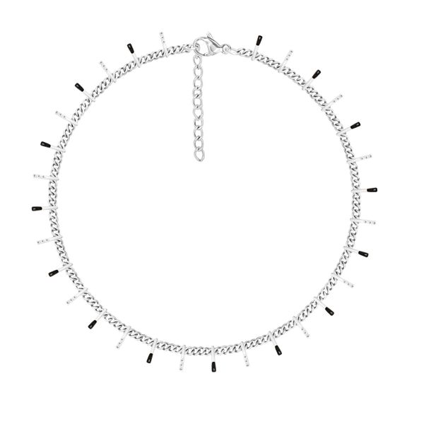 Bransoletka z emaliowanymi elementami, posrebrzana. Długość bransoletki: 16 cm + 5 cm przedłużki Bransoletka wykonana ze stali szlachetnej pokrytej srebrem próby 925, emaliowana.