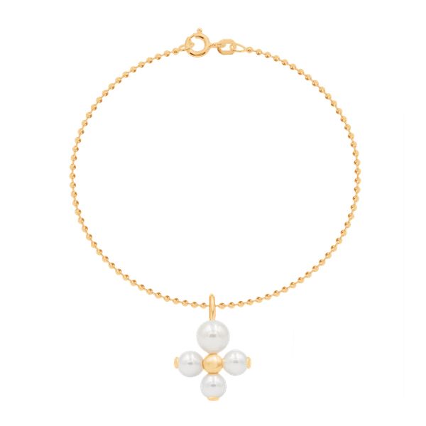 Bransoletka z pozłacaną zawieszką Luck z perłami, o wielkości 2 cm na pozłacanym łańcuszku Kulki. Kolekcja Luck to talizmany składające się z kropel szczęścia ułożonych w kształt koniczyny – kultowego symbolu marki. Miłość, przyjaźń, zaufanie, akceptacja to esencja szczęścia, która zależy tylko od Ciebie. Podaruj ją sobie i innym. Zawieszka pozłacana 18-karatowym złotem.