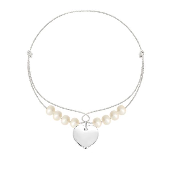 Bransoletka ze srebrnym sercem o wielkości 1,5 cm i 8 mini perłami w kolorze srebrnym na cienkim srebrnym sznurku premium. Osobisty grawerunek doda wyjątkowości i pomoże wyrazić uczucia. Waga zawieszki: 2,7 gram. Zawieszka wykonana ze srebra próby 925.
