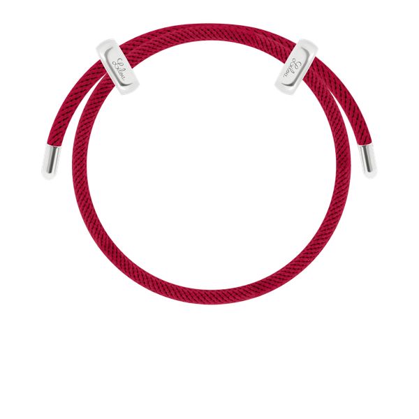 Bransoletka Liana, posrebrzana w kolorze bordowym z możliwością regulacji. Całkowita długość bransoletki: 25 cm Zapięcie do regulowania ze stali szlachetnej pokrytej srebrem próby 925. Bransoletka wykonana z terylenu. Bransoletkę możesz spersonalizować dodając do niej swój ulubiony talizman Lilou.