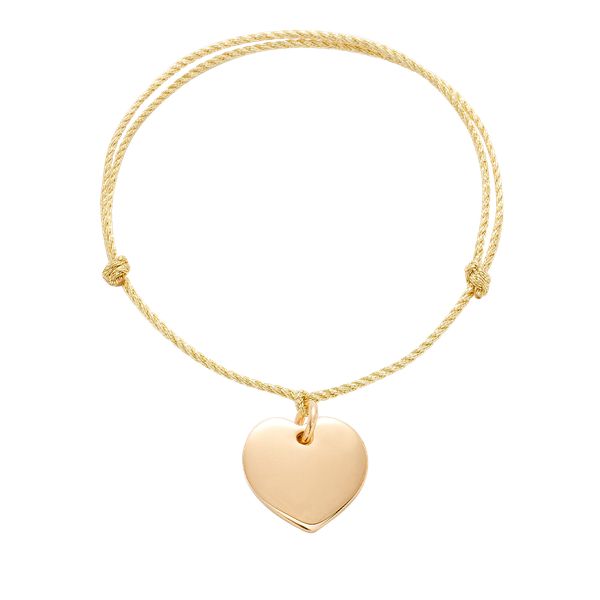 Bransoletka z pozłacanym sercem o wielkości 1,5 cm na grubym złotym sznurku premium. Osobisty grawerunek doda wyjątkowości i pomoże wyrazić uczucia. Serce jest symbolem miłości, namiętności i troski. Zawieszka pozłacana 18-karatowym złotem.