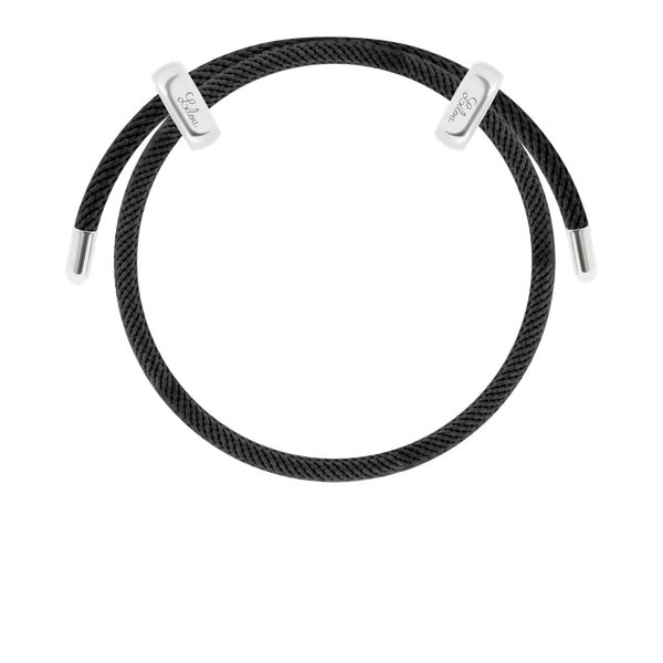 Bransoletka Liana, posrebrzana w kolorze czarnym z możliwością regulacji. Długość bransoletki: 25 cm Zapięcie do regulowania ze stali szlachetnej pokrytej srebrem próby 925. Bransoletka wykonana z terylenu. Bransoletkę możesz spersonalizować dodając do niej swój ulubiony talizman Lilou.