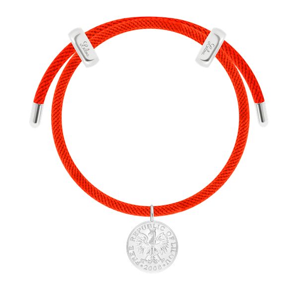 Bransoletka Liana w kolorze czerwonym z posrebrzaną Monetą Szczęścia