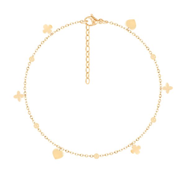 Bransoletka Etincelle to talizman stworzony z unikatowych i kultowych symboli marki – serca, koniczyny i lilii. Są one źródłem energii i spełnienia. To epicentrum pozytywnych emocji! Długość bransoletki: 16 cm + 5 cm przedłużkiWielkość elementów: 0,6 cmIlość elementów: 6 Bransoletka wykonana jest ze stali szlachetnej pokrytej 18-karatowym złotem.