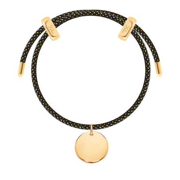 Bransoletka Liana, pozłacana w kolorze czarnym ze złotą nitką z pozłacanym medalikiem o wielkości 1,5 cm. Bransoletka posiada możliwość regulacji. Medalik jest symbolem harmonii i talizmanem pozytywnych emocji. Osobisty grawerunek uczyni Twoją biżuterię niepowtarzalną. Medalik pozłacany 18-karatowym złotem. Z tyłu elementu znajduje się logo Lilou. Zapięcie do regulowania bransoletki wykonane jest ze stali szlachetnej pozłacanej […]