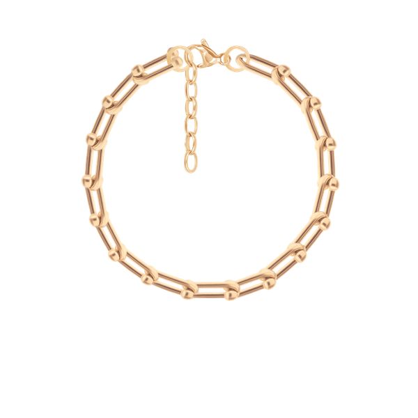 Bransoletka Łańcuch No.11, z ogniwami, pozłacana. Dłigość łańcucha: 16 cm + 5 cm przedłużki Wielkość ogniwa: 1,5 cm Do bransoletki możesz dołączyć zapięcie i swój ulubiony talizman Lilou. Łańcuch wykonany jest ze stali szlachetnej pokrytej 18-karatowym złotem.