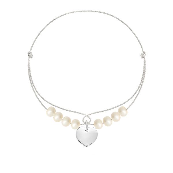 Bransoletka ze srebrnym sercem o wielkości 1 cm i 8 mini perłami w kolorze srebrnym na cienkim srebrnym sznurku premium. Waga zawieszki: 0,9 gram. Osobisty grawerunek doda wyjątkowości i pomoże wyrazić uczucia. Obwód bransoletki: ok. 16 cmRegulacja za pomocą supełków 2-3 cm. Prosimy o podanie obwodu nadgarstka (w cm) w uwagach do zamówienia.