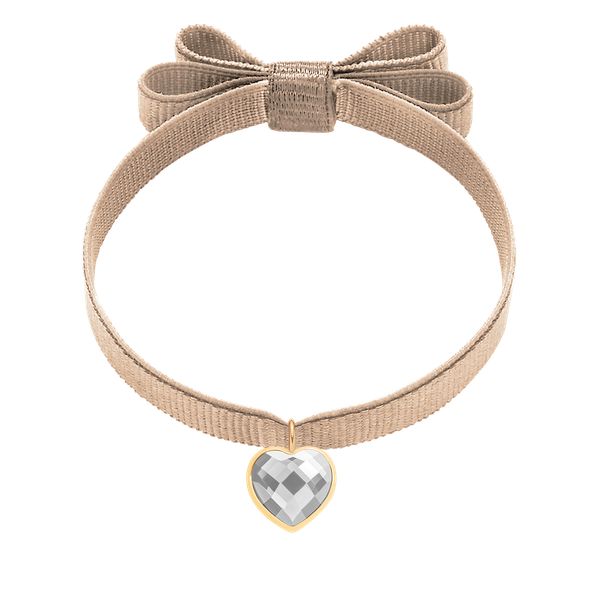 Bransoletka z pozłacanym sercem z ciemnoszarym kryształem na podwójnej wstążce w kolorze kości słoniowej