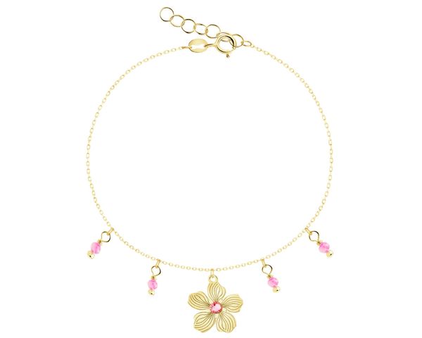 Złota bransoletka z cyrkoniami – kwiat – AP544-0157. Żółte złoto