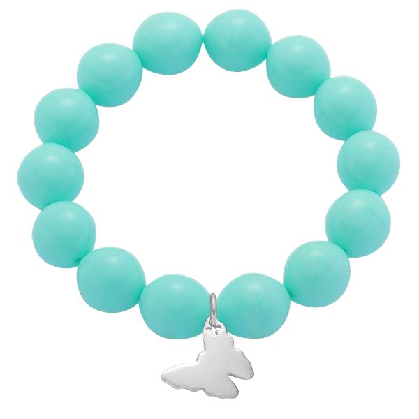 Bransoletka z posrebrzanym motylem o wielkości 1,5 cm na kryształowych dużych miętowych kulkach. Motyl jest symbolem wolności i beztroski.Zawieszka wykonana ze stali szlachetnej pokrytej srebrem próby 925. Obwód bransoletki: 16 cmŚrednica koralika: ok. 1,2 cm Prosimy o podanie obwodu nadgarstka (w cm) w uwagach do zamówienia.