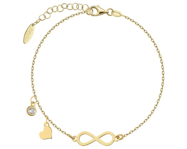 Bransoletka srebrna z cyrkonią – nieskończoność, serce – AP544-3364. Srebro pozłacane