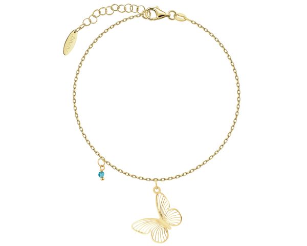 Bransoletka srebrna ze szligowanym szkłem – motyl – AP544-3359. Srebro pozłacane