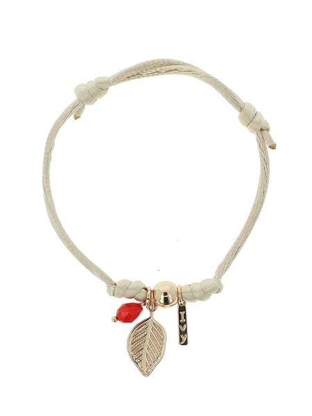 – materiał: mosiądz, tkanina- powłoka: 14K złoto- zapięcie: ściągane- regulacja długości: tak- element ozdobny: liść