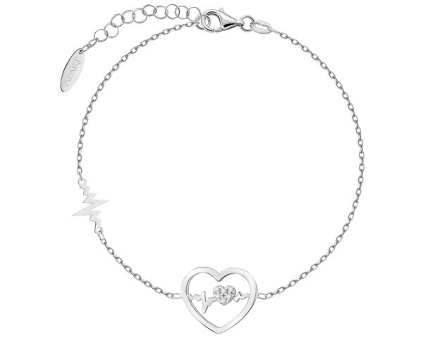 Bransoletka srebrna z cyrkoniami – EKG serca, serca