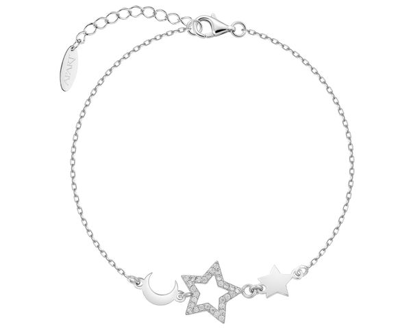 Bransoletka srebrna z cyrkoniami – Księżyc, gwiazdy – AP544-0184. Srebro rodowane