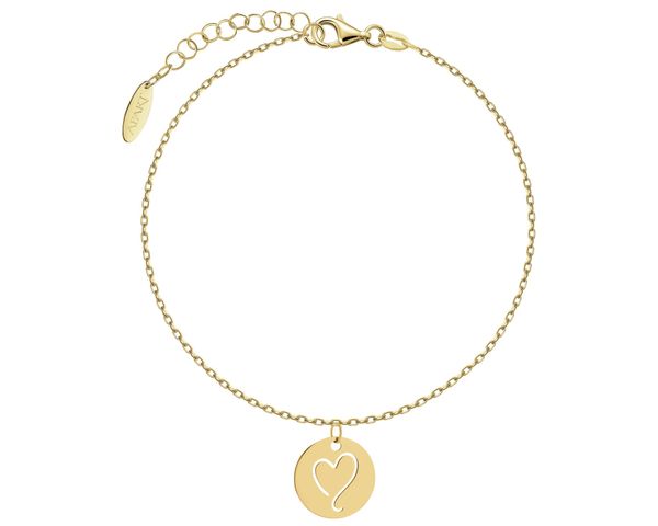 Bransoletka srebrna – serce, koło – AP544-6956. Srebro pozłacane