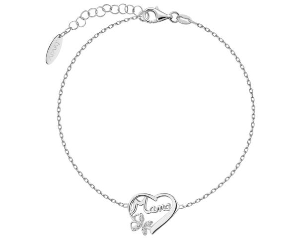 Bransoletka srebrna z cyrkoniami – mama, serce