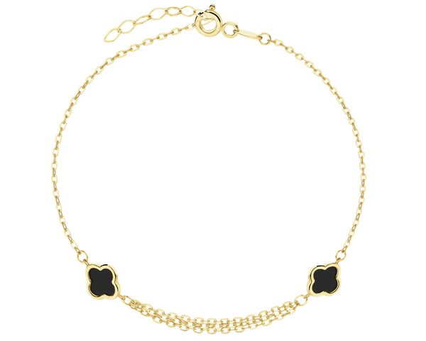 Złota bransoletka z onyksami syntetycznymi – koniczyny